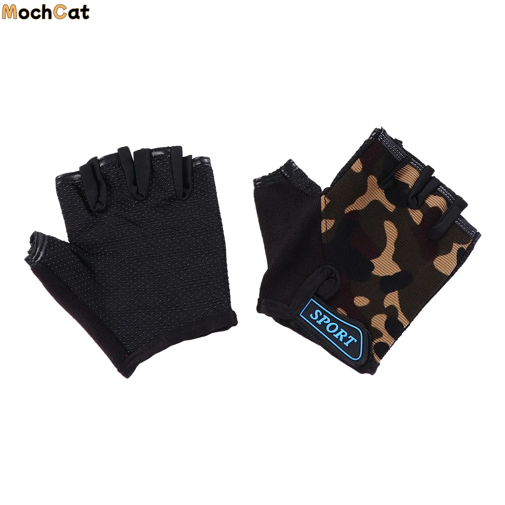 Anti-Schweiß-Wanderhandschuhe für Mädchen, atmungsaktiv, elastisch, für Kinder, Radfahren, Halbfinger-Handschuhe, Camouflage-Fahrradhandschuhe, Reitausrüstung
