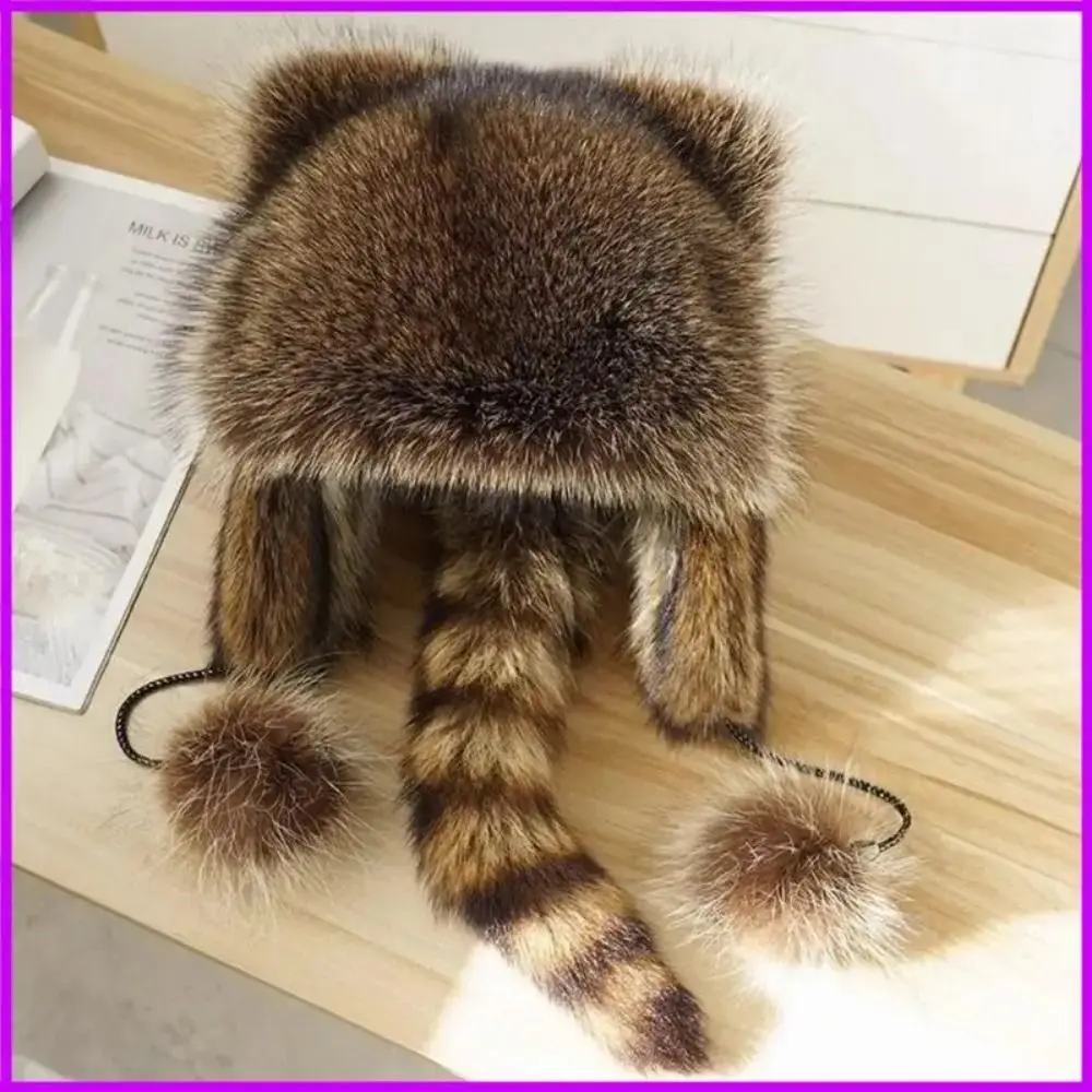 Niedlicher Eltern-Kind-Waschbär-Schwanzhut, dicke warme Ohren, modisches Design, Helm-Innenfutter, kältebeständiges, verdickendes Material, Hut für die Wintersaison