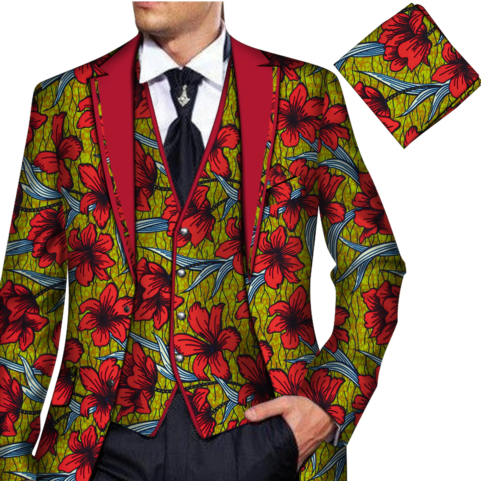 Heißer Männer Angepasst Blazer mit Weste Afrikanischen Druck Männer Kleidung Hochzeit Anzug Blazer Jacke Tops Mantel Herren Anzug Jacke WYN766