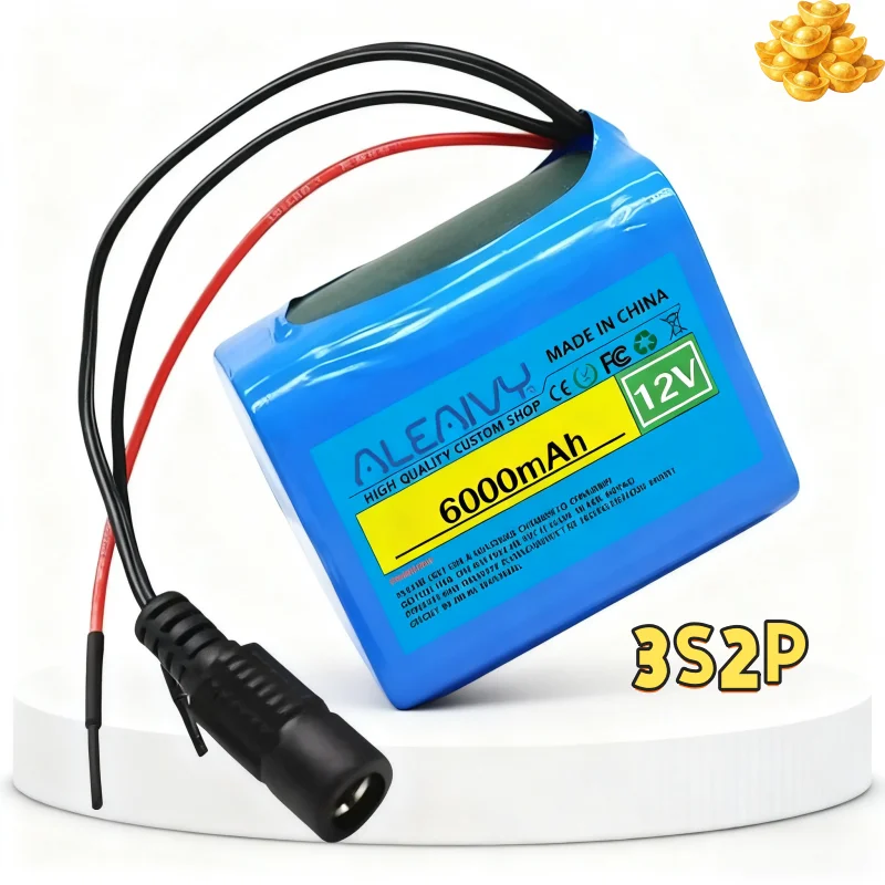 Tragbares 12-V-DC-Netzteil, 6000 mAh Lithium-Akku, 3S2P-Set mit Ladegerät für LED-Suchscheinwerfer im Freien, kabelloser Lautsprecher,