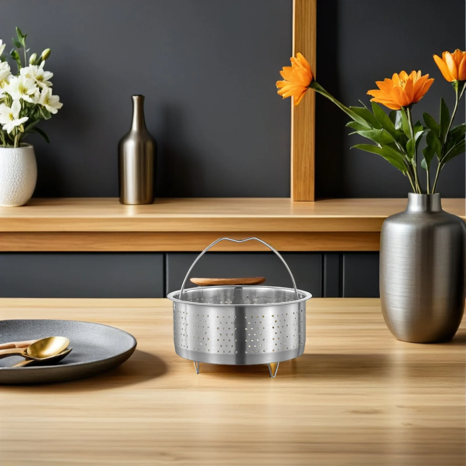 Dampfkorb aus Edelstahl, abtropfbar, für Lebensmittel, Dampfgarer, für Fleisch, Meeresfrüchte, Gemüse, Reisbrötchen, Einsatz, Küchentopfhalter