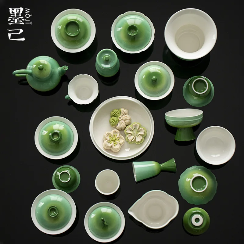Chinesischer Stil Modisches Jadegrünes Handbemaltes Keramik-Teeservice, Deckelschale, Teekanne, Teeschale, Wunderschönes Geschenk für Teeliebhaber