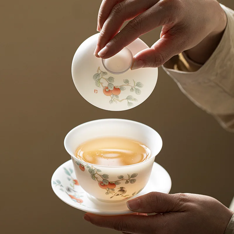 Chinesische Retro-Abdeckungsschale, leichtes, luxuriöses weißes Porzellan, große Keramik-Teetasse, einzelnes Teeset