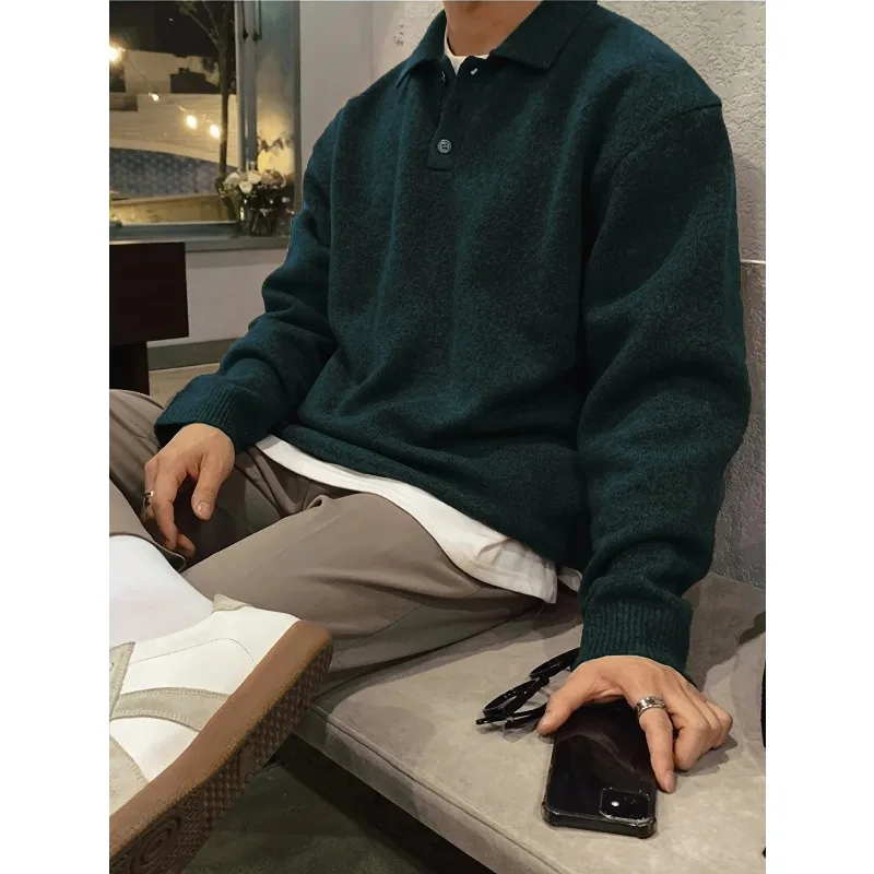 Herren-Pullover mit Polo-Ausschnitt, Herbst- und Winterpullover, mit Fleece gefütterte Strickwaren, Oberteile, schmale Passform, dicke Pullover