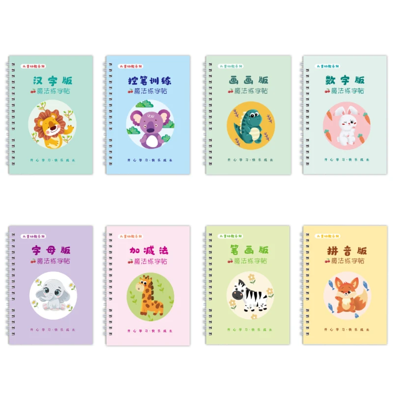 8 Bücher/Set: Kindergarten-Kalligrafie-Übungshefte für Kleinkinder – Magisches Buch zum Schreibtraining mit Stiftführung