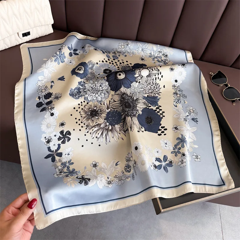 70*70cm Platz Schal Hijab Frauen Seide Kopftuch Foulard Bandana Halstuch Weibliche Kopf Schals Mode Druck Schmücken Krawatte