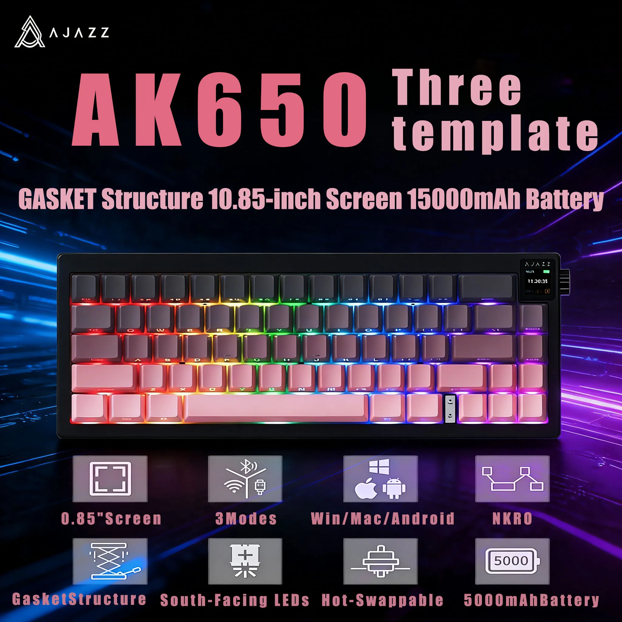 AJAZZ AK650 Kabellose mechanische Tastatur mit kabelloser Gaming-Dichtung mit drei Modi, kompakt und tragbar mit Bildschirm