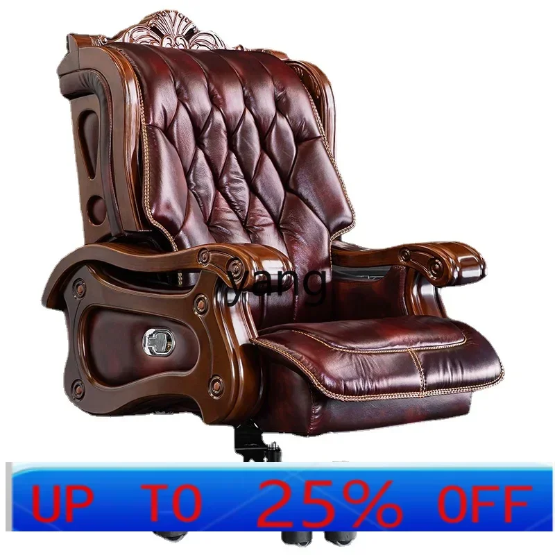 LMM Hochwertiger Chefsessel aus Echtleder, Verstellbarer Computerstuhl für Zuhause, Komfortabler Studier- und Geschäftsbürostuhl