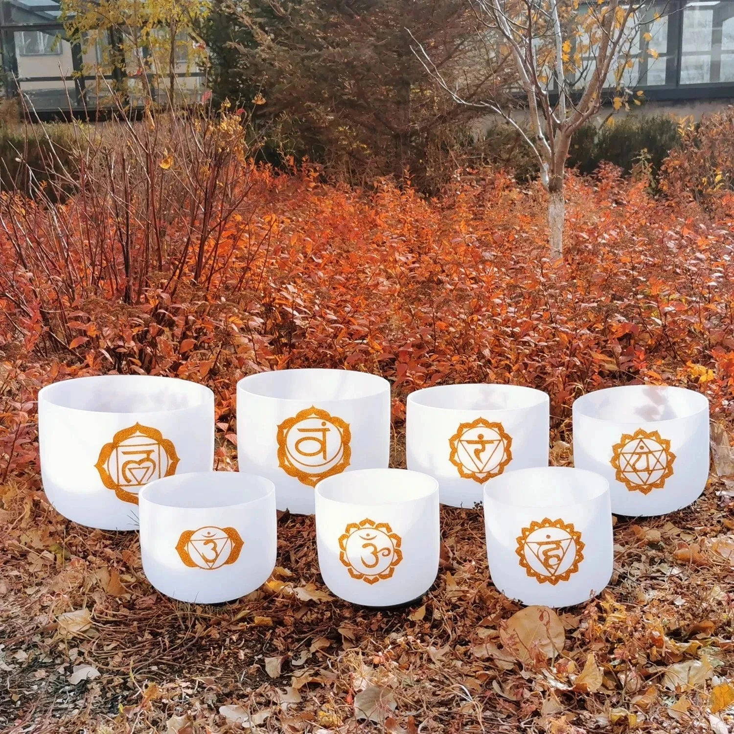 7-12 Inch 432hz Aria Gradient Design Frosted Crystal Singing Bowls Set Of 7pcs With Carrying Case For Yoga Sound Healing