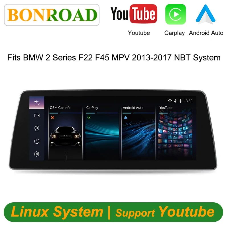 Bonroad 10.25" Linux Carplay Android Auto Car Multimedia Monitor For BMW 2 Series F22 F45 MPV 2013-2017 NBT System Airplay Radio
