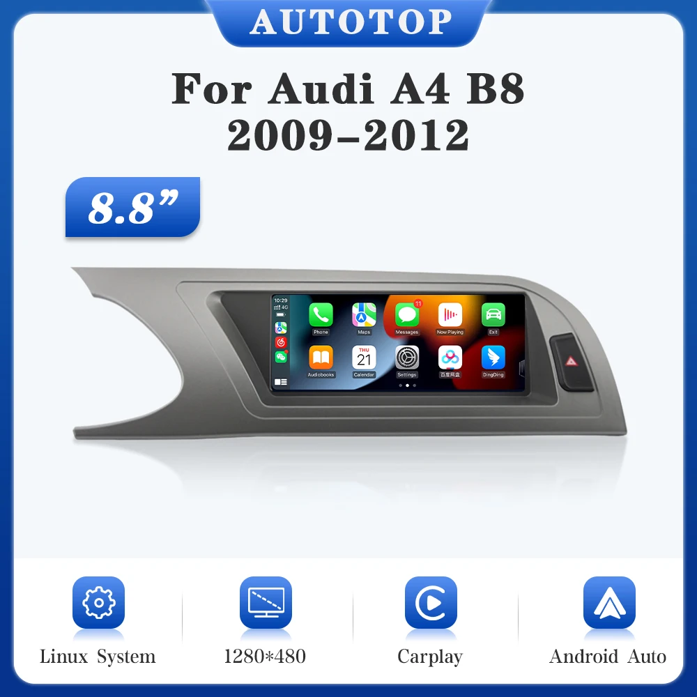 AUTOTOP 8,8" Touchscreen Linux Autoradio Wireless CarPlay für Audi A4 B8 2009-2012 Wireless Android Auto Navigation Mirrorlink