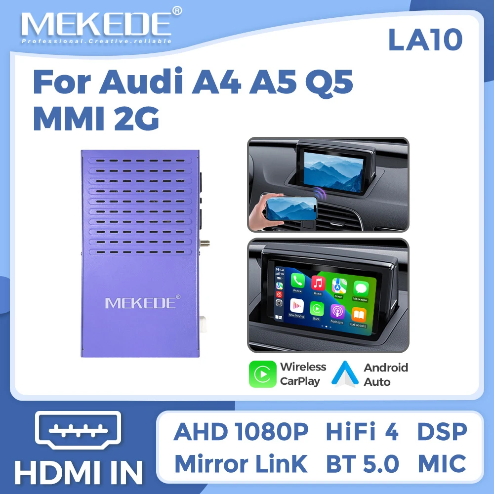 MEKEDE Wireless CarPlay Android Auto Decoder für Audi A1 Q3 A4 A5 Q5 MMI 2G Smart Video Box unterstützt Mirror Link, YouTube und Netflix.