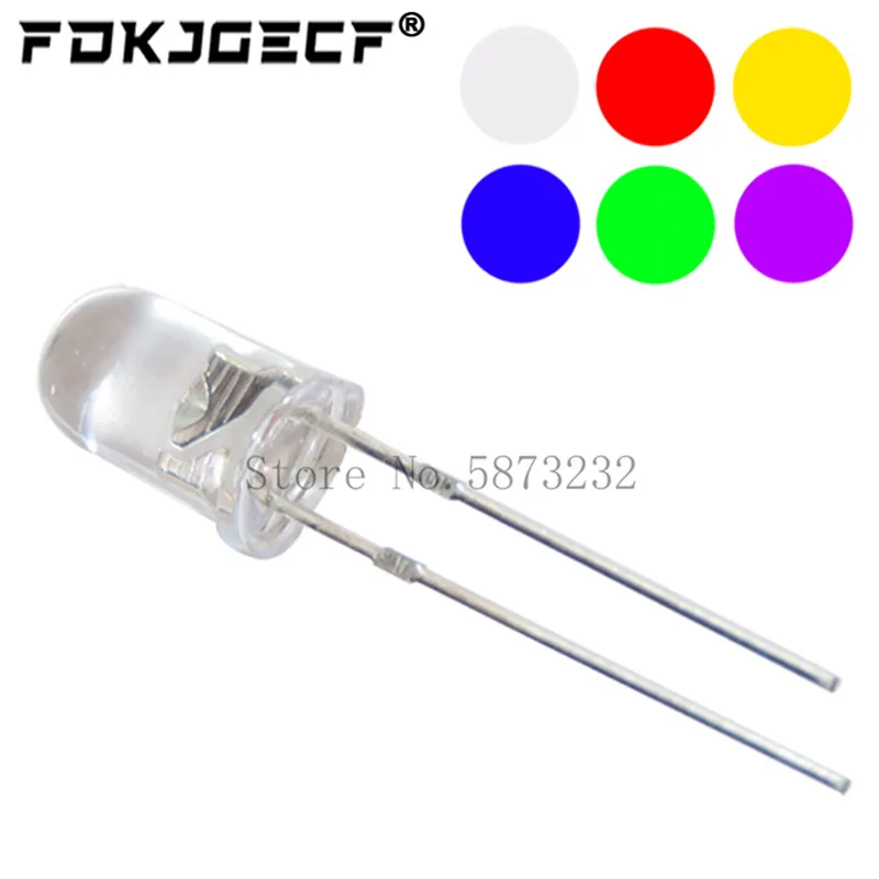 100 teile/los Transparent Runde 5mm super helle wasser klar Grün Rot weiß Gelb Blau Lila Licht led-lampen emittierende diode F5