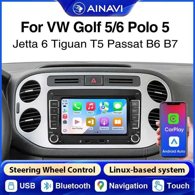 AINAVI Kabelloses Android Auto Carplay Autoradio Voiture Radio Samochodowe Pantalla Coche Radio für Auto Intelligente Systeme Autoradio Android Radio Coche Für VW Golf 5 T5 Polo 5 Passat B6 B7 Tiguan Jetta MK6 Auto-Multimedia 2 Din Touchscreen 7 Zoll