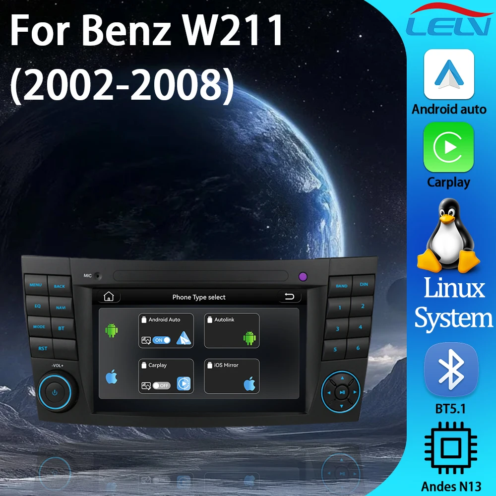 LELV 7'' Linux Autoradio für Mercedes Benz E-Klasse W211 E200 E220 E300 E350 E240 E280 CLS-KLASSE W219 mit CarPlay Android Auto