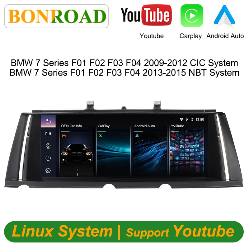 Bonroad 10.25" Wireless Carplay Android Auto Display For BMW 7 Series F01 F02 F03 F04 CIC NBT System 2009-2015 Car Headunit