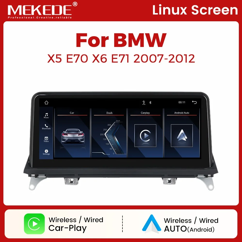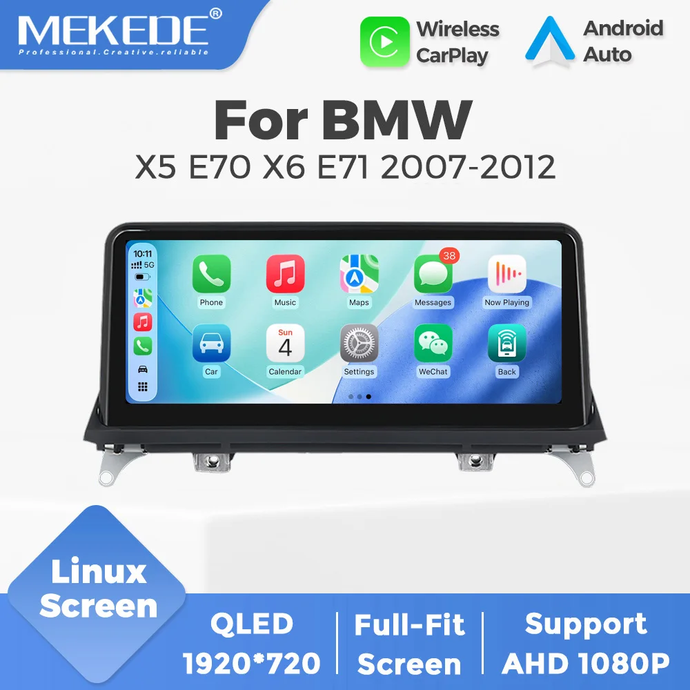 MEKEDE Linux 10,25'' Bildschirm Kabelloses Carplay Android Auto Autoradio für BMW X5 E70 X6 E71 2007-2012 BT Mirror Link 2DIN Stereo Multimedia Player Smart Car System