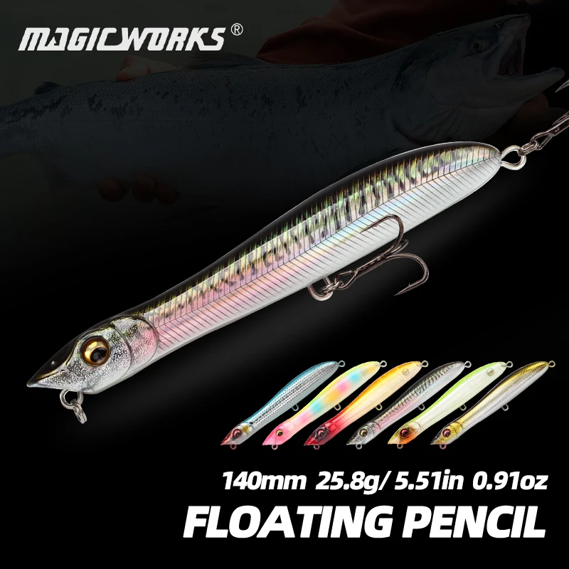 Magic Works 140 mm 25,8 g Popper-Bleistift-Angelköder, Oberfläche zu Fuß auf dem Hund, schwimmende Wobbler, Schlangenkopf, künstlicher Köder, Bass