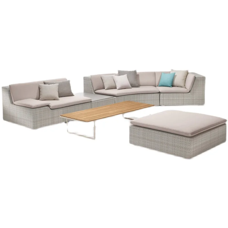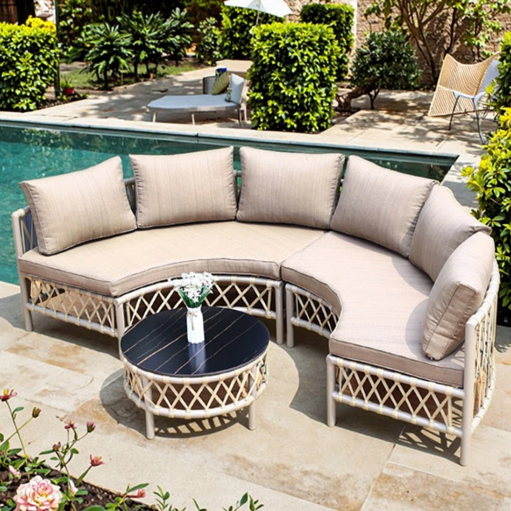Rundes Rattan-Sofa für den Außenbereich, Kombination aus Garten, Innenhof, halbrunder Rattan-Stuhl, Sofa, Outdoor-Hotel, gebogenes Wohnzimmersofa