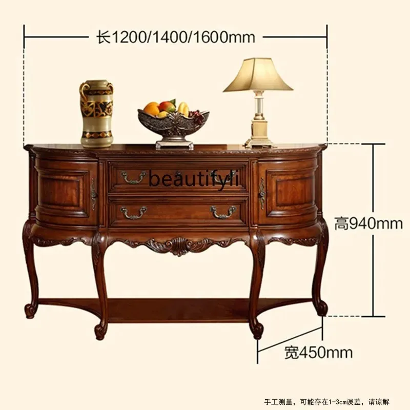 A44 Verandatisch aus massivem Holz, Retro-Sofa-Rückenlehne, europäischer Stil, Wohnzimmer-Beistelltisch, geschnitzter halbrunder Verandaschrank