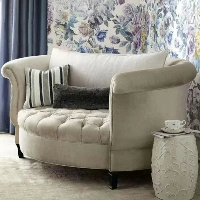 Einfaches kleines Doppel-Samtsofa, kleines Apartment, halbrunder Einzelsofa-Sessel