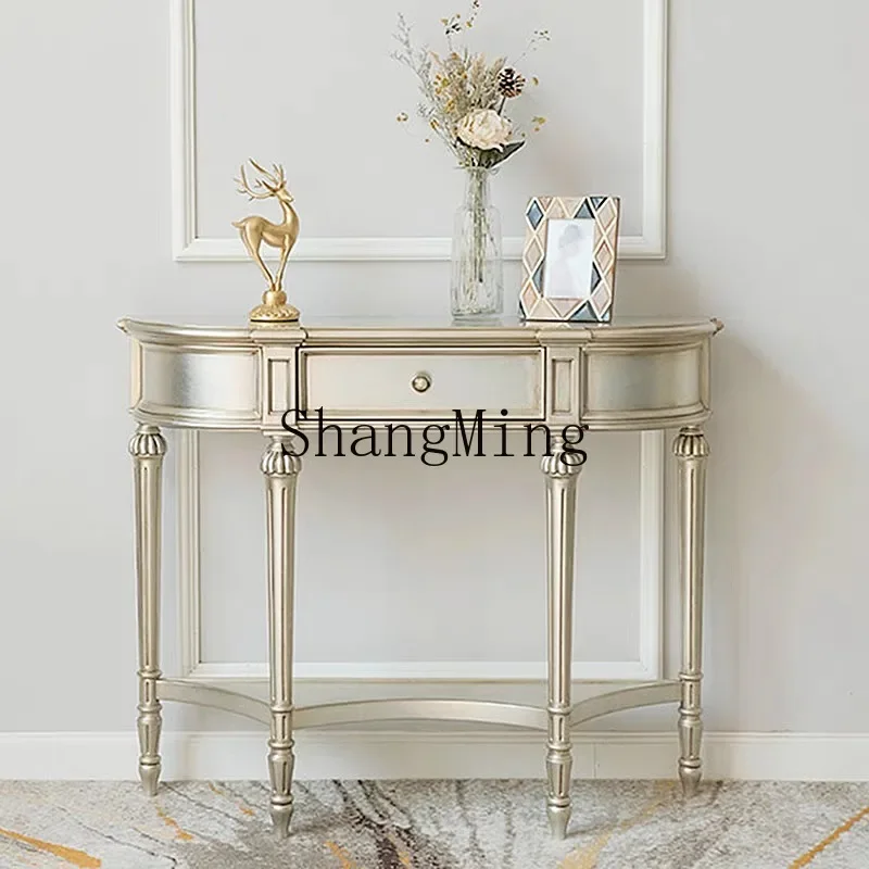 ZYY Home Massivholz heller Luxus halbrunder Konsolentisch High-End-Sofa im Eingangsbereich neben dem Tisch