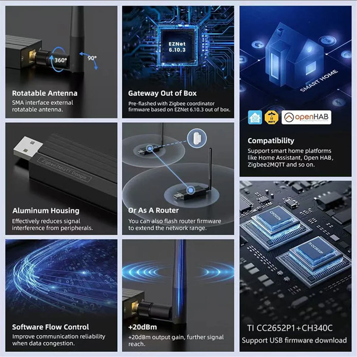 2025+ Zigbee 3.0 USB-Dongle, Multiprotokoll-Unterstützung, Plug & Play für Home Assistant OpenHAB ZigBee 2MQTT