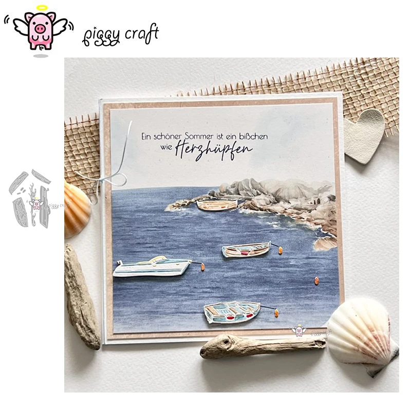 Piggy Craft Metall-Stanzformen, geschnittene Matrizenform, Fischerboot-Dekoration, Sammelalbum, Papier, Handwerk, Messerform, Klingenstanzer, Schablonen