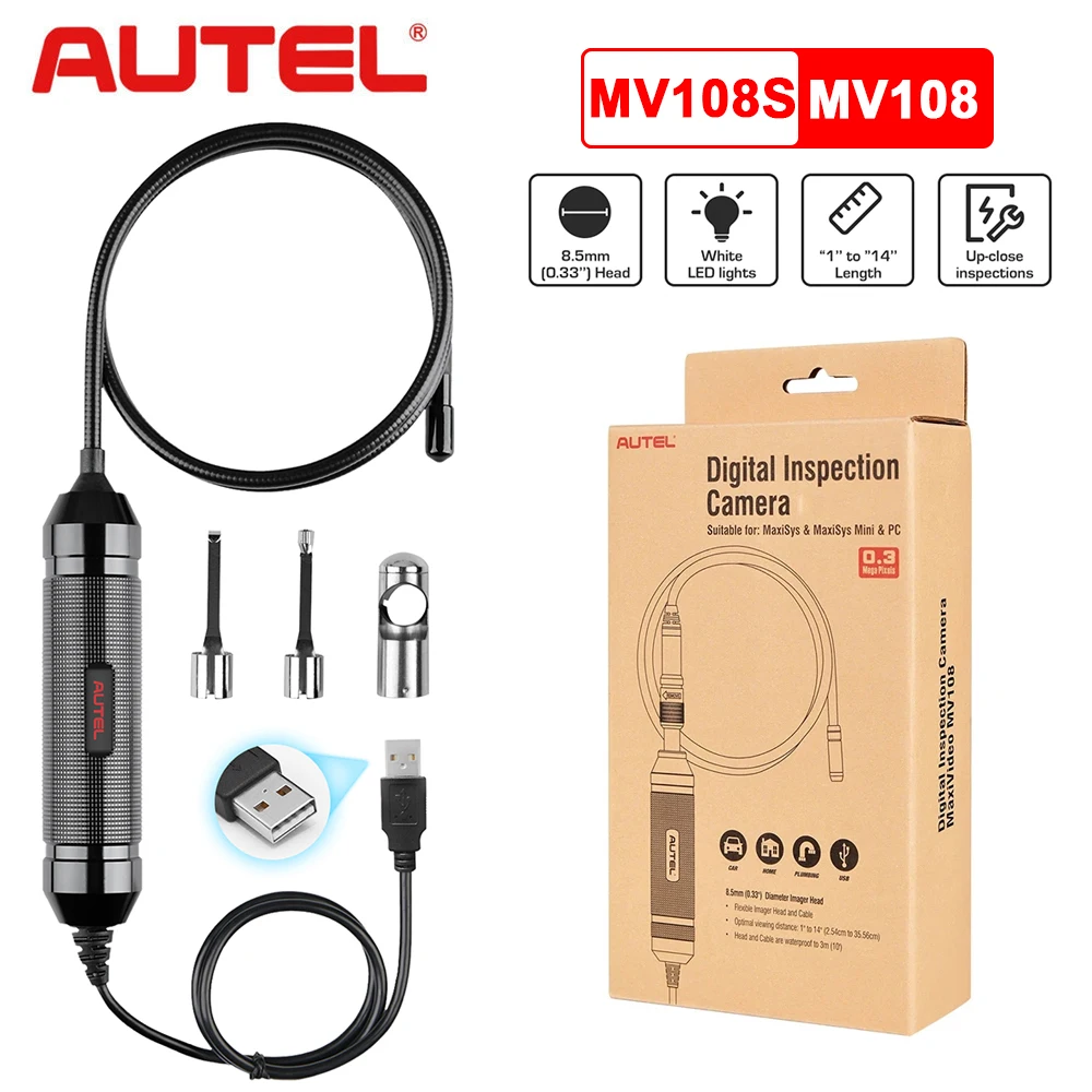 Autel MaxiVideo MV108S HD Digitale 8,5 mm Kfz-Inspektionskamera für MK808BT PRO, funktioniert mit MaxiSys Tablet und PC-Autodiagnose