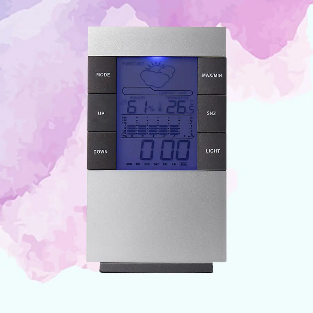 1 Stück elektronisches Hygrometer-Thermometer, LCD-Digital-Temperatur- und Luftfeuchtigkeitsuhr mit Alarm, Datums- und Zeitanzeige, Feuchtigkeitsanzeige