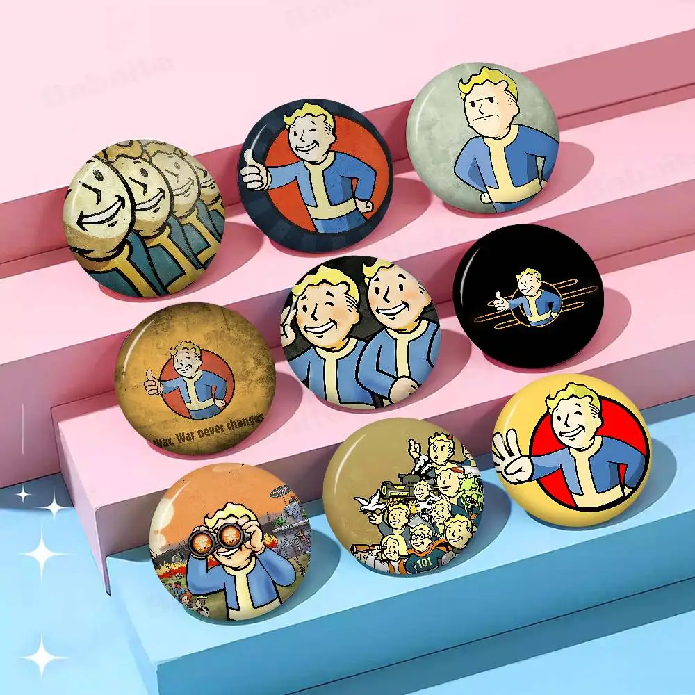 F-Fallouts Spiel 58mm Nette Anime Figur Icon Abzeichen Handgemachte Weißblech Brosche Für Rucksack Kleidung Brust Ornament Geschenke