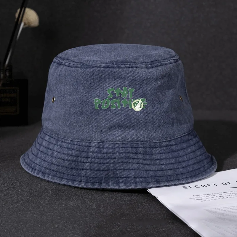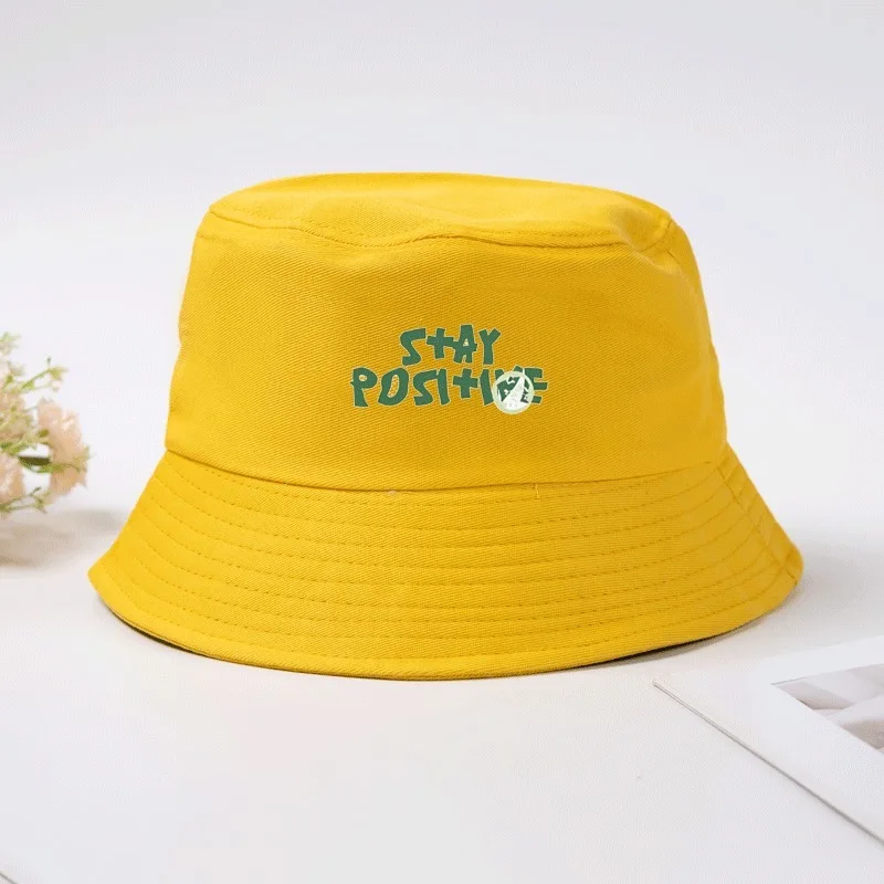 Bucket Hat mit Aufdruck „Stay Positive“, Fischerkappe aus Baumwolle, inspirierender Slogan, Sonnenhut, Outdoor-Strandkappe für Männer und Frauen, atmungsaktiv