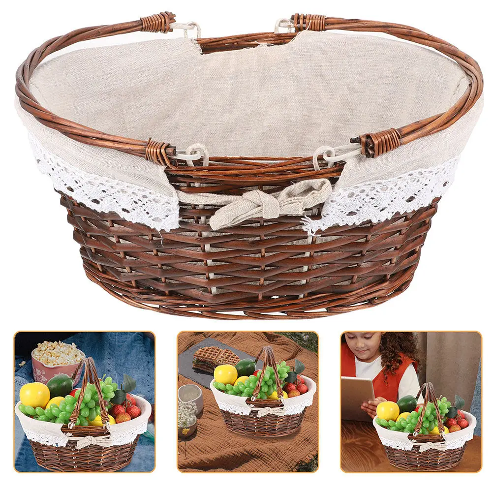 Handgewebter ovaler Picknickkorb aus Rattan, Weidenkorb mit Griff für Obst, Snacks, Gemüse, tragbare dekorative Aufbewahrung