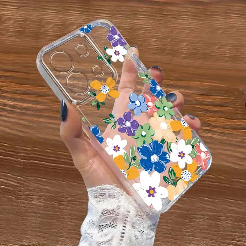 Bunte Blumen-Kunst-Design Handyhülle für Xiaomi Redmi Note 15 14 13 12 11E 9 9T 8 8T Pro Plus Turbo 5G Modische TPU Transparente Hülle