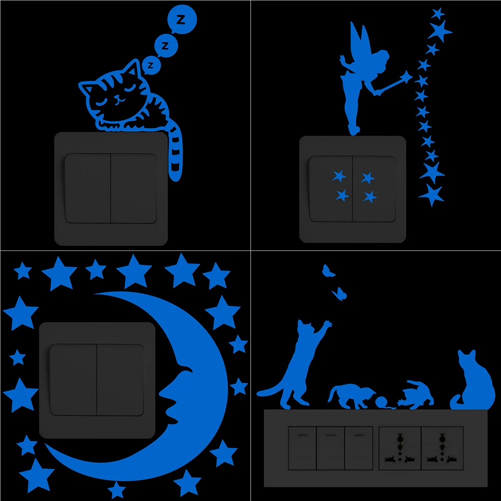 Wandschalter Dekoration Leuchtende Aufkleber Katze/Fee/Streifen/Glühbirne/Gecko/Dinosaurier/Fußball/Elefant/Mond Sterne/Rocket/Glocke.