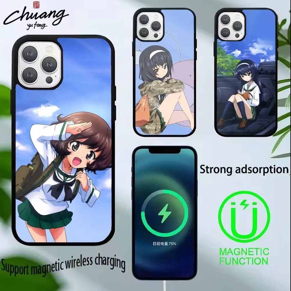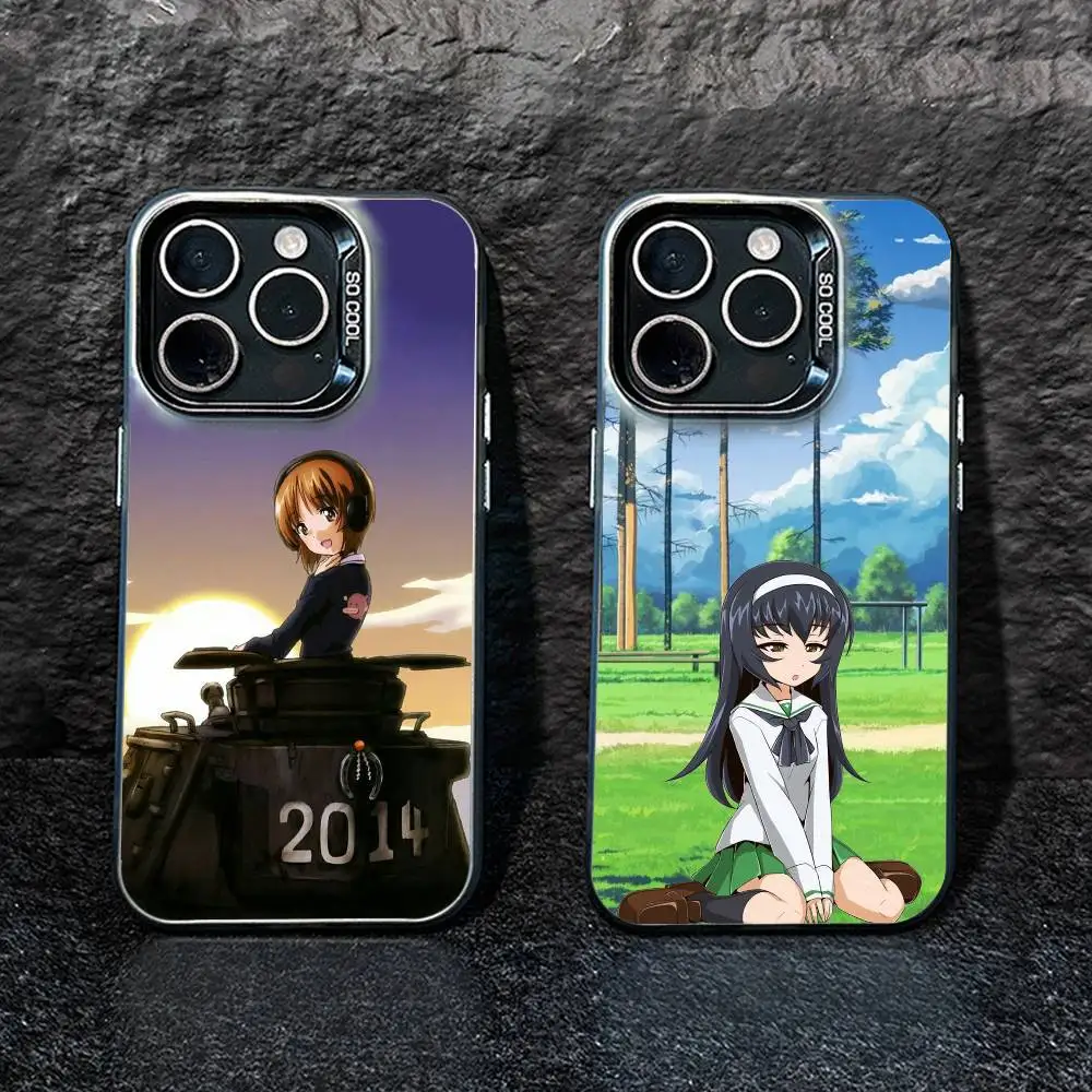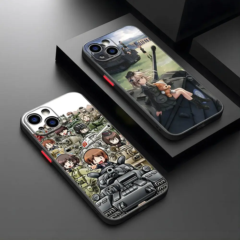 Mädchen und Panzer Handyhülle matt durchscheinend für IPhone 15 Pro 16 Pro Max 13 11 12 14 Xs X Xr 7 8 Plus Se Rückseite
