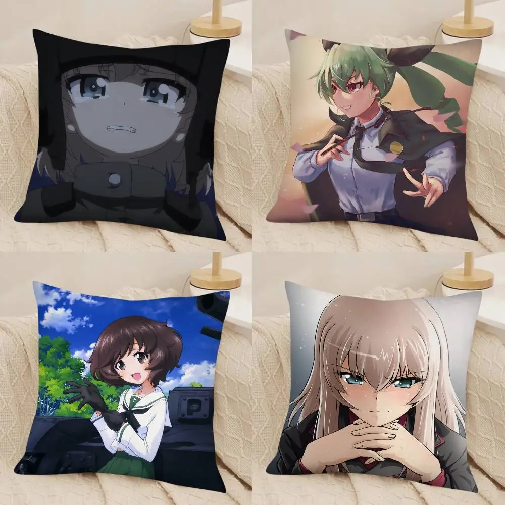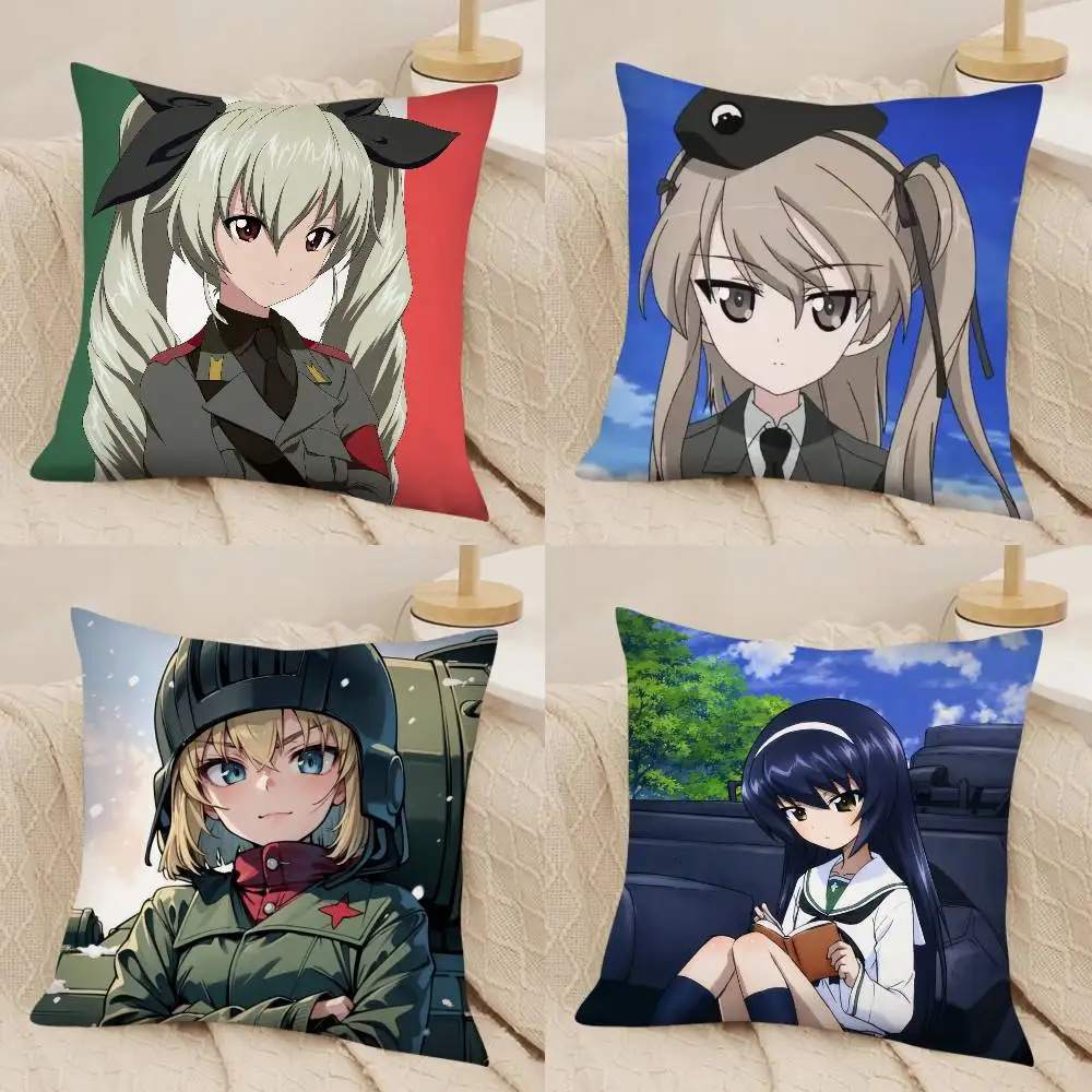 G-GIRLS Und PANZER Kissenbezug für Auto, Sofa, dekorativ, für Zuhause, doppelseitiger Druck, Plüsch, quadratisch, Kissenbezug
