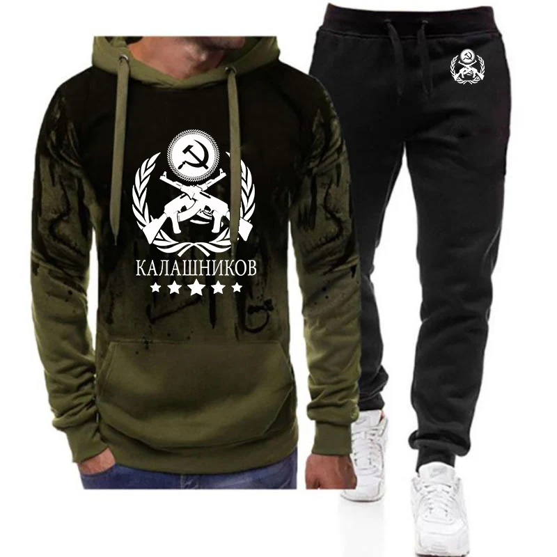 2026 AK47 Vintage UdSSR CCCP Druck Frühling Herbst Herren Neuer Farbverlauf Kapuzenpullover + Jogginghose Freizeitanzug