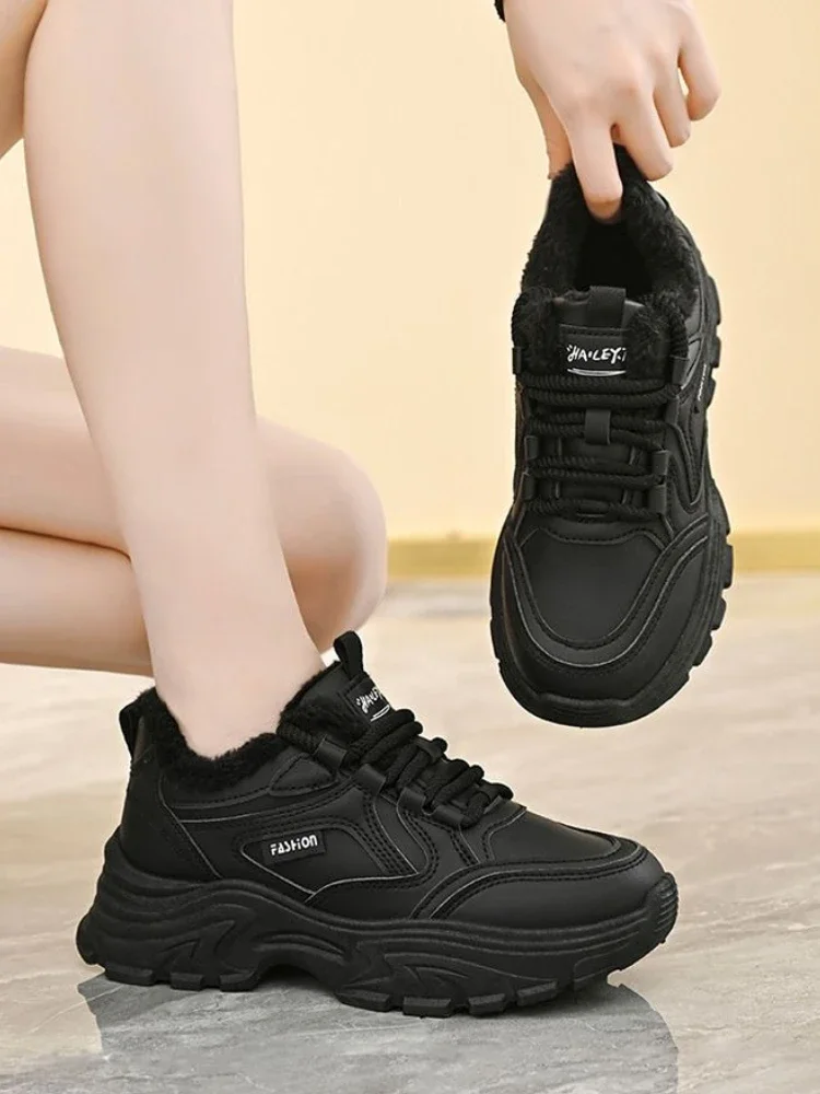 Winter-Retro-Sneaker für Damen, koreanische Thermo-Baumwoll-Sportschuhe mit dicker Sohle und Fleece-Futter, bequeme Lauf-Gymbekleidung