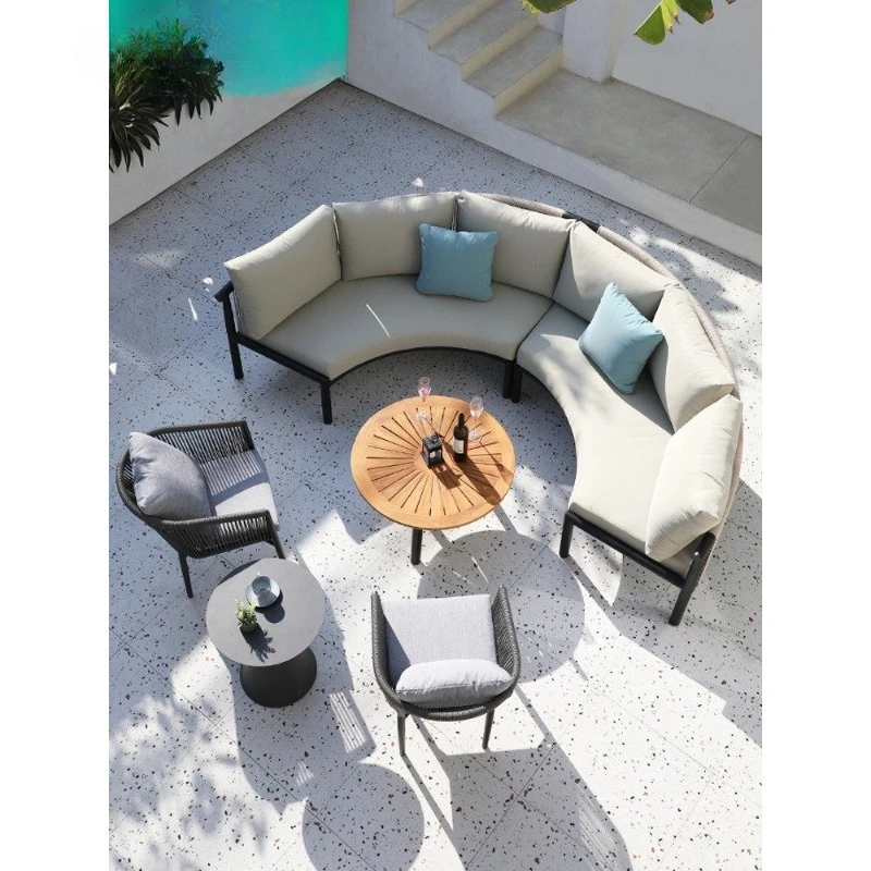 ZYH runde Rattan-Sofa-Kombination für den Außenbereich, Freizeitvilla, halbrunder Rattan-Stuhl-Sofa