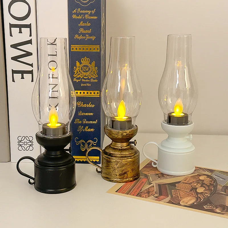 Vintage Retro LED Tisch-Öllampe Batteriebetrieben Flackernder Kerzeneffekt Dekorative Petroleumlampe für Zuhause und als Geschenk