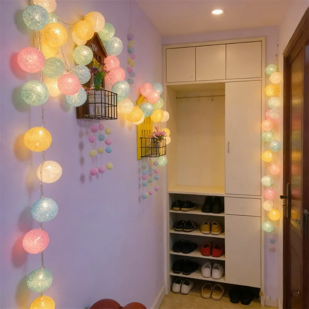4CM Baumwollkugel-Lichterkette, Feengirlande, Weihnachtsbeleuchtung, 10/20 LED, für Feiertage, Hochzeiten, Partys, Heimdekoration, batteriebetrieben