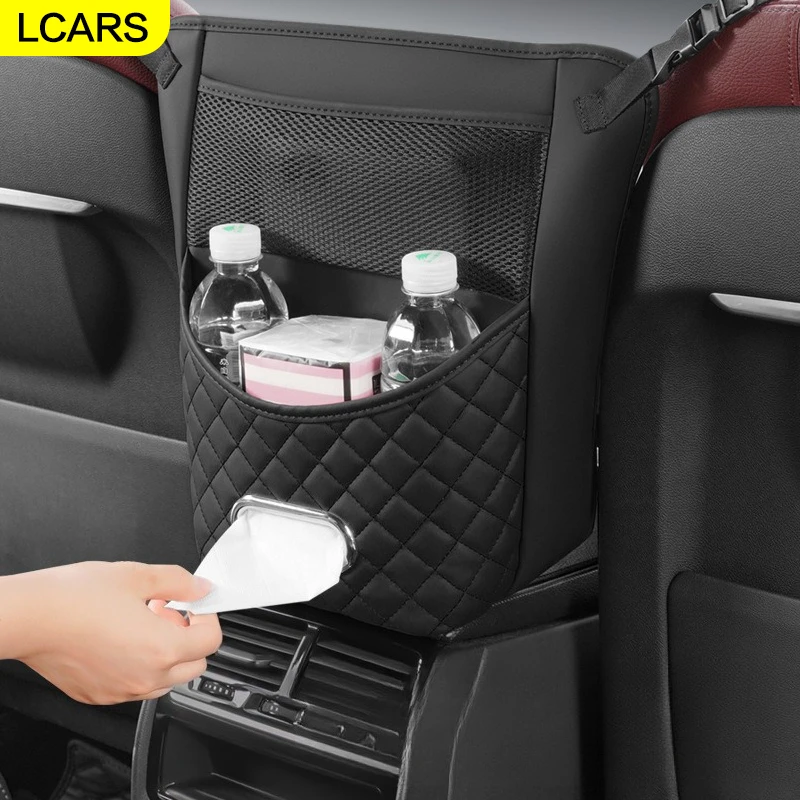 Lcars Autositz-Mittelaufbewahrungsnetztasche, Auto-Aufbewahrungstasche, zentrale Steuerung im Auto, multifunktionale Isolation, Hängetasche, Taschentuchbox-Aufbewahrung, langlebiges Pu-Leder-Material