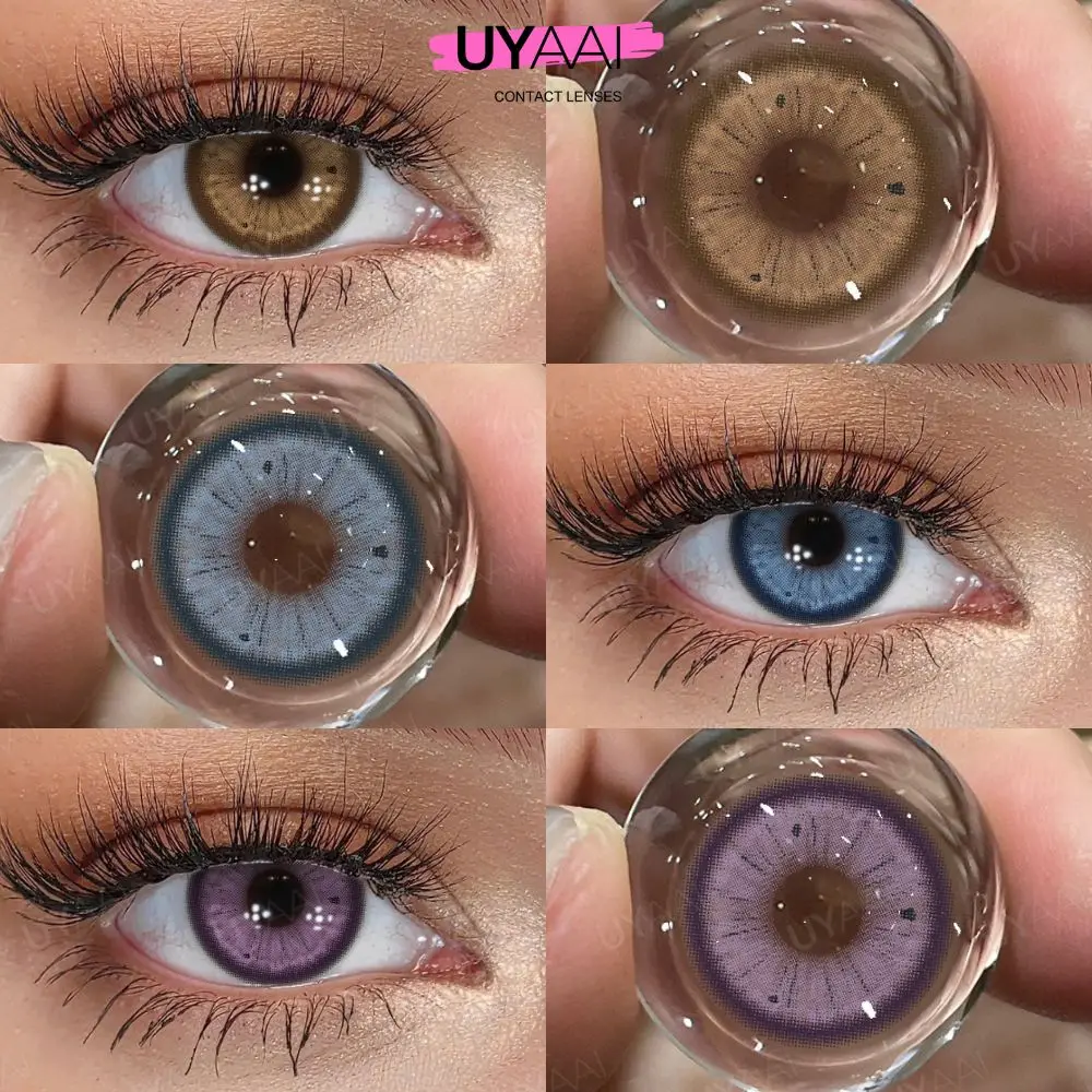 UYAAI 1 Paar modische farbige Kontaktlinsen, Make-up, Fruchtsaft-Serie, grüne Kontakte, blaue Augen, jährlicher Komfort, Gesundheit, kostenloses Etui