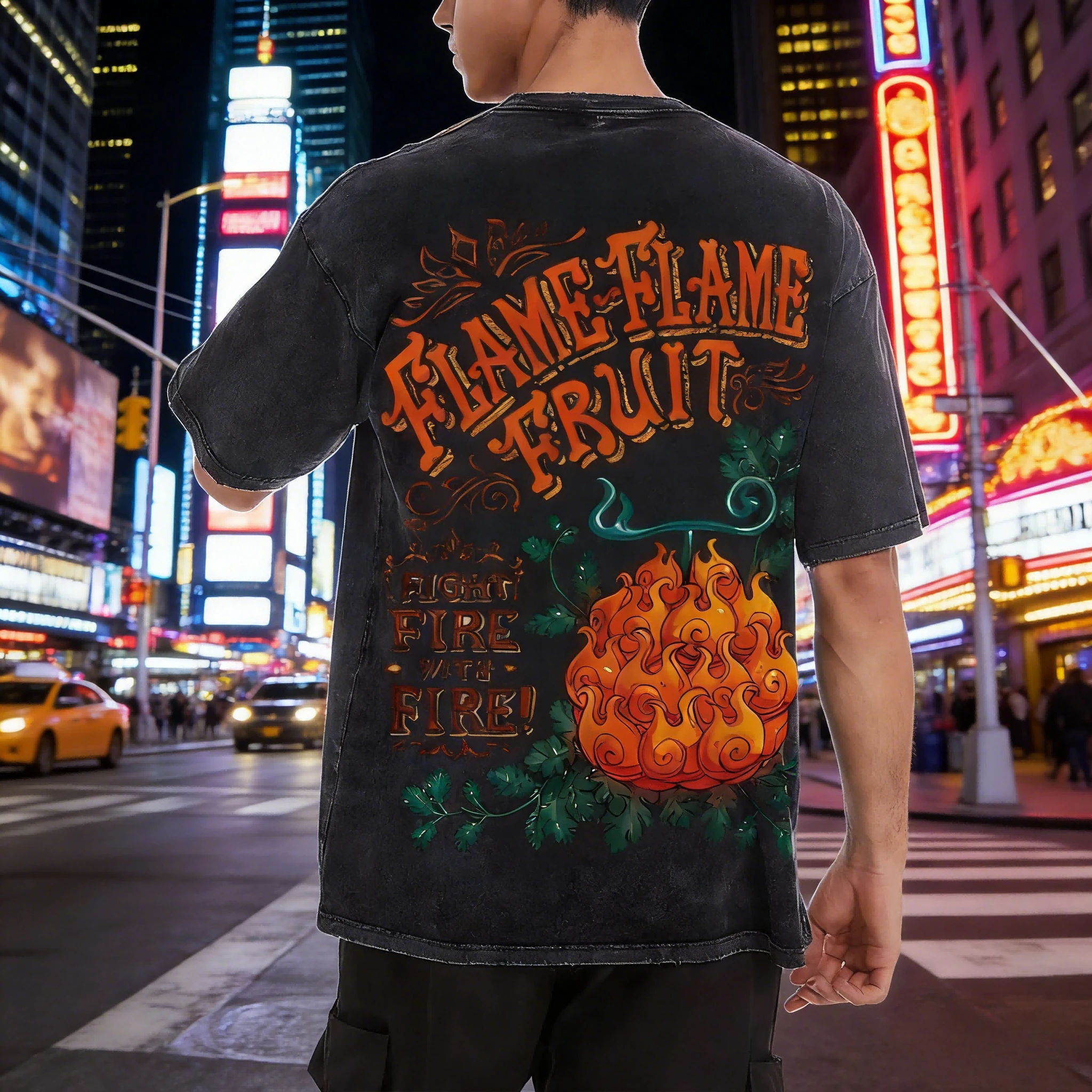 ONE PIECE Burnt Fruit Retro Washed T-Shirt Ace Flame Elements Old Loose Anime Street Kurzarm Sommer Herren- und Damenoberteile