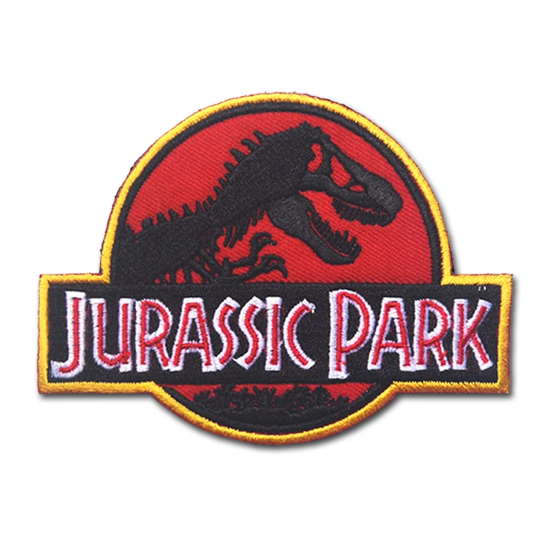 Dinosaurier Jurassic Park Logo Abzeichen Stickerei Haken und Schleife Outdoor Warlock Patches Militär Rucksack Tasche Aufkleber Hut Applikationen