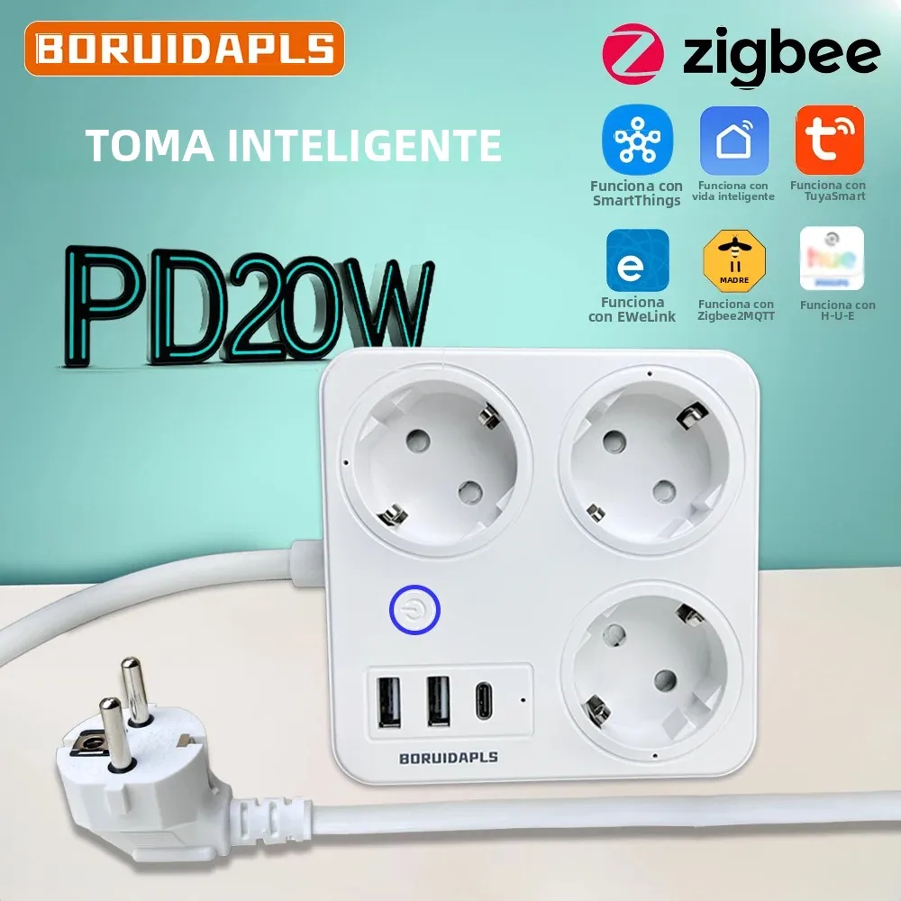BORUIDAPLS ZigBee EU Smart Power Strip PD20W Typ-C Tuya EWeLink Fernbedienung | Stimme mit mehreren Open-Source-Plattformen Smart Socket