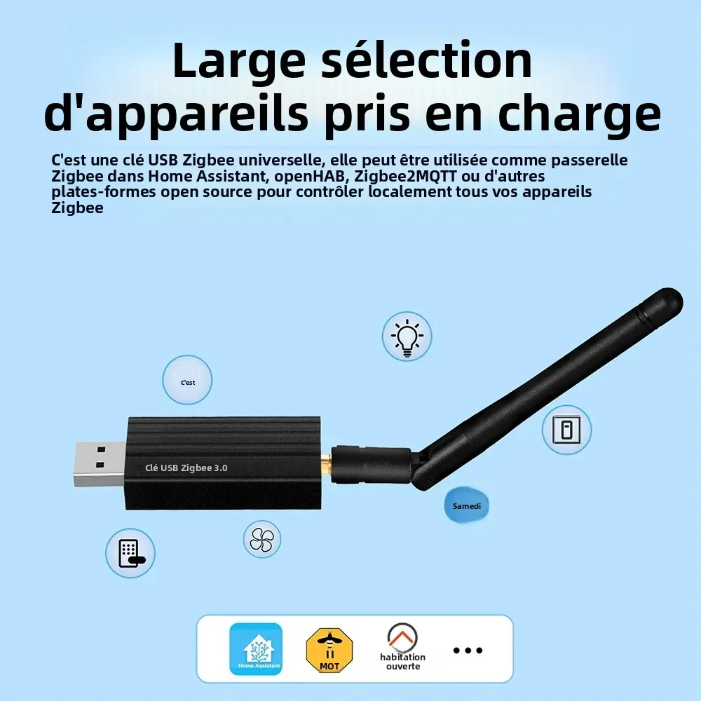 Haozee Zigbee 3.0 USB-Dongle Plus Stick Universal Zigbee Gateway Hub mit Antenne kompatibler Zigbee-Serie 2MQTT Home Assistant
