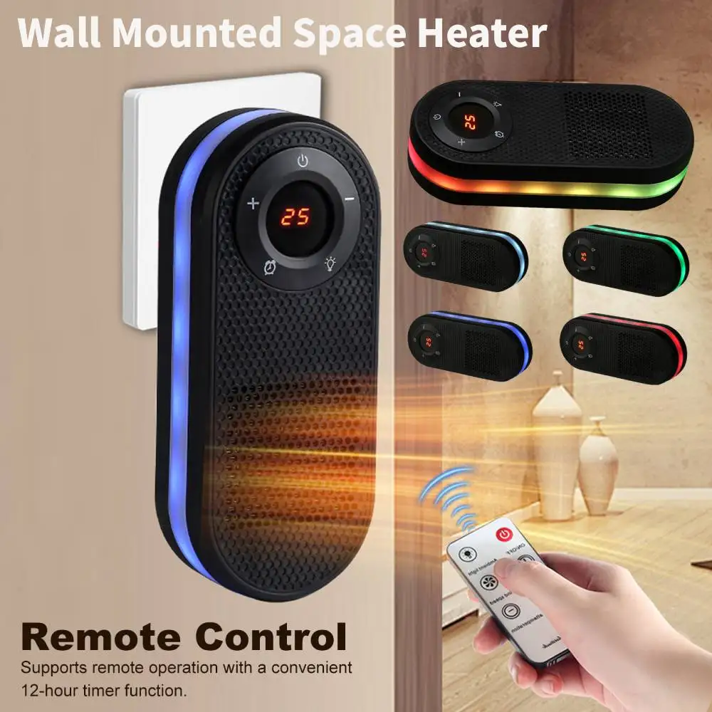 An der Wand montierter Raumheizer mit Nachtlicht, kleiner, schneller Wärme-Raumwärmer, Überhitzungsschutz für Schreibtisch, Tisch, Schlafzimmer, Arbeitszimmer, Büros