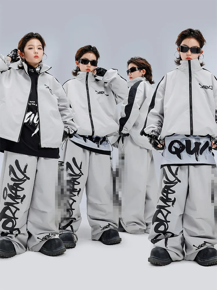 Street Dance Hip-Hop-Kleidung für Jungen, Baggy-Graumantel, Hosen-Outfit, modische Poppin-Breaking-Performance-Kleidung, Gruppen-Bühnenkostüm